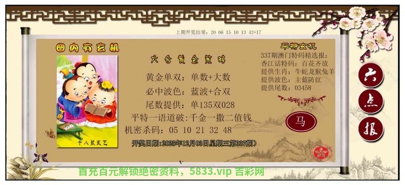 | 337期:平特连肖『蛇羊牛虎鸡』开:2肖 |